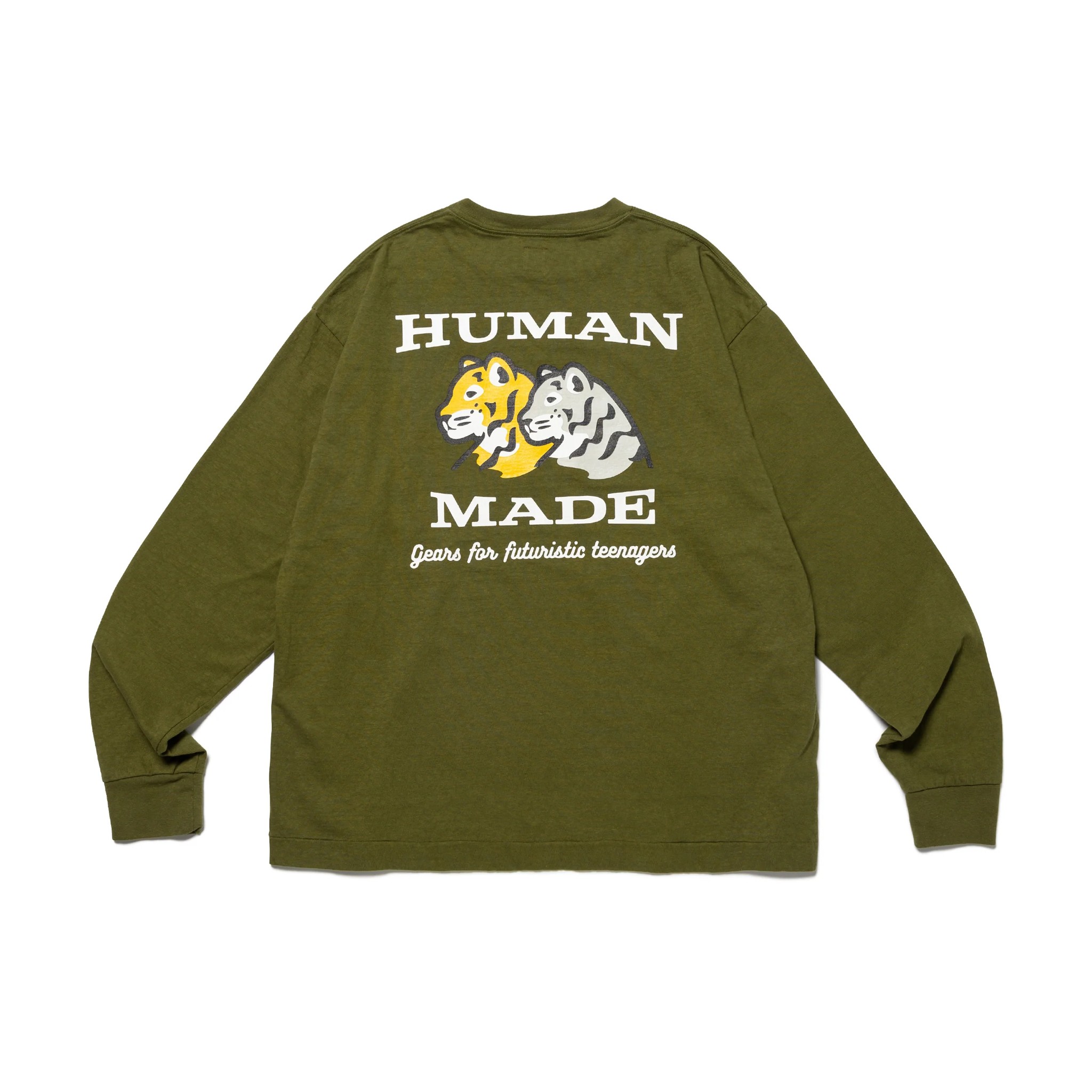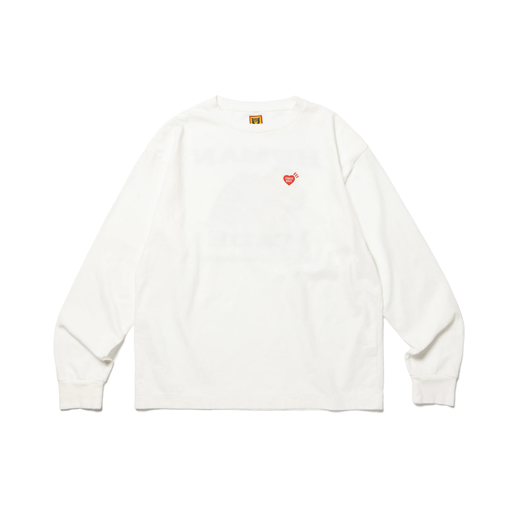 HUMAN MADE經典剪裁圖案長袖T,竹節棉獨有的柔軟手感, 正面飾有心形LOGO徽章,背面印有原創動物主題圖案。