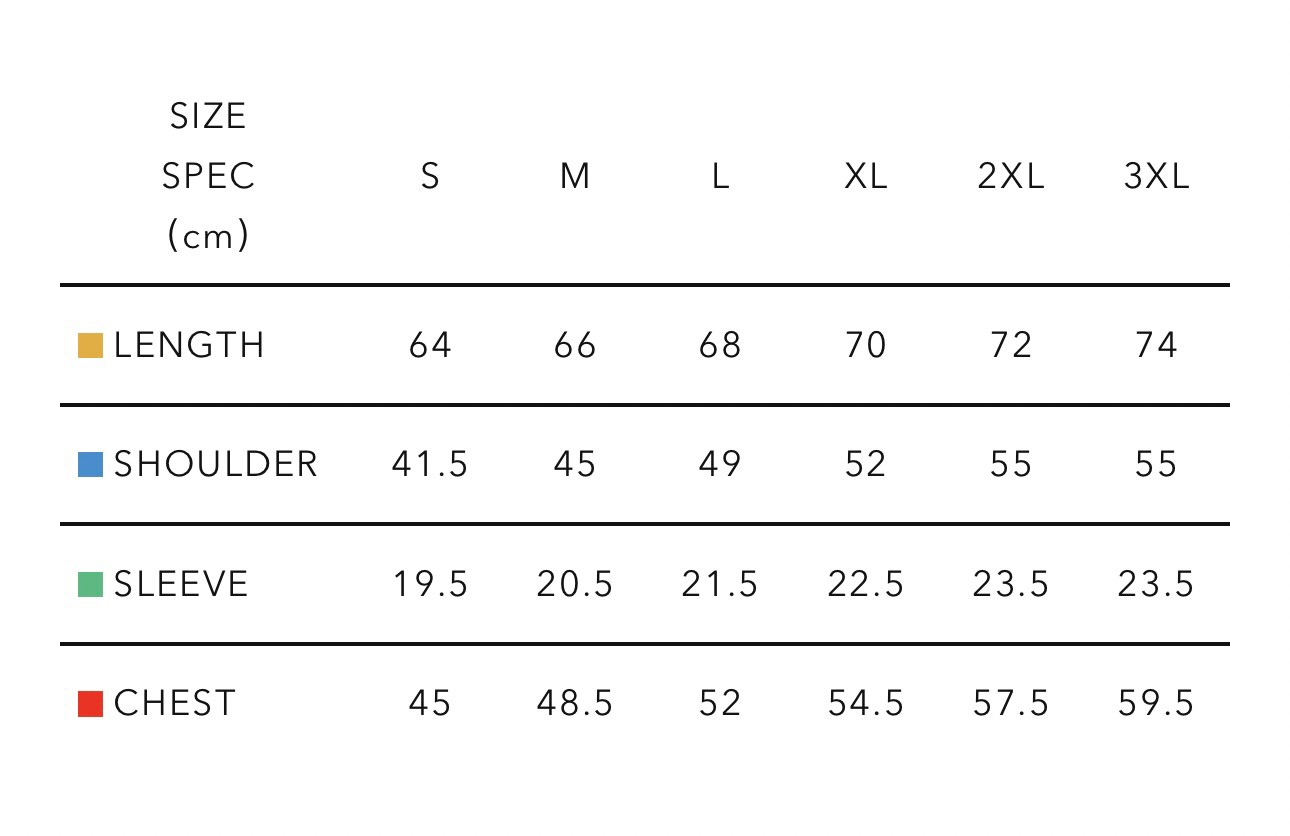 | 尺寸 | S, M, L, XL, 2XL, 3XL |
